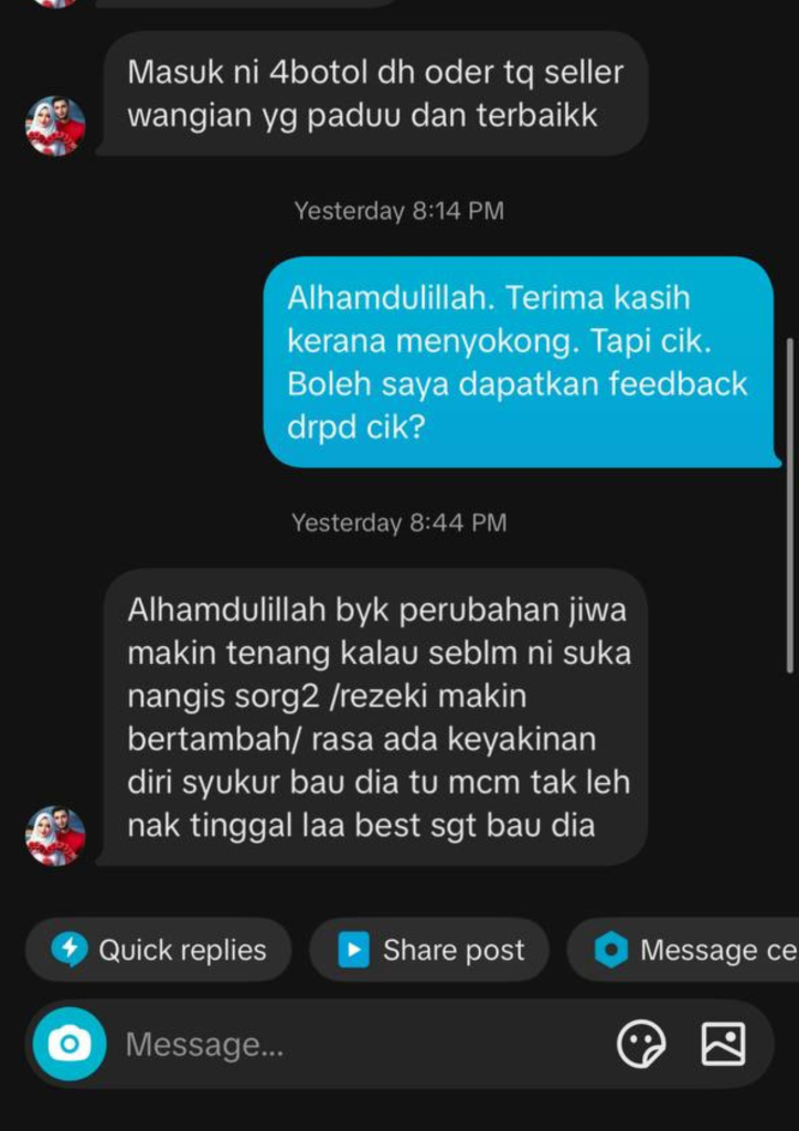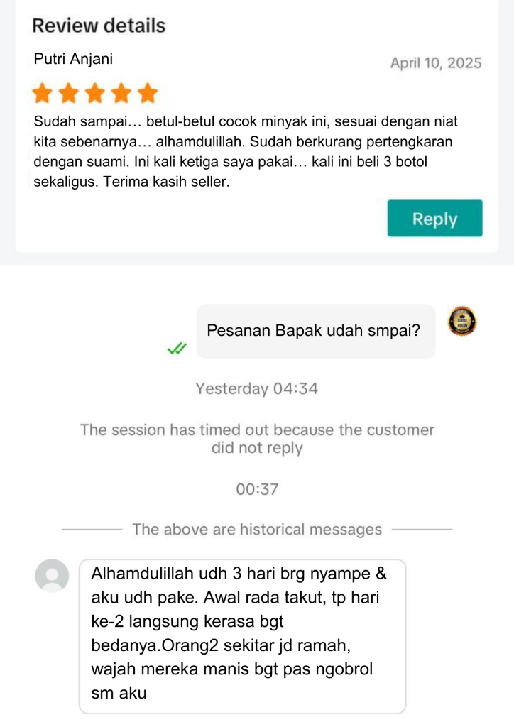 Pesan Tok: “Kalau kamu pakai minyak ini, jangan sampai lari akidah. Tetap yakin bahwa semua yang terjadi hanya dengan izin Allah.”